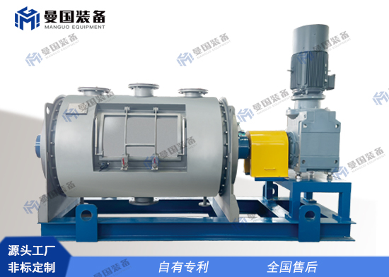 干燥機筒體設(shè)置夾套和保溫,當(dāng)含一定水分的物料進入設(shè)備后,設(shè)備動部件運轉(zhuǎn)帶動主軸上安裝的多組錯位犁刀攪拌器以及筒體兩側(cè)板位置設(shè)置的旋轉(zhuǎn)刮板運轉(zhuǎn),使筒內(nèi)物料產(chǎn)生不間斷漩渦離心力,不斷重疊翻轉(zhuǎn),同時在結(jié)構(gòu)上避免攪拌死角問題。查看更多 + -